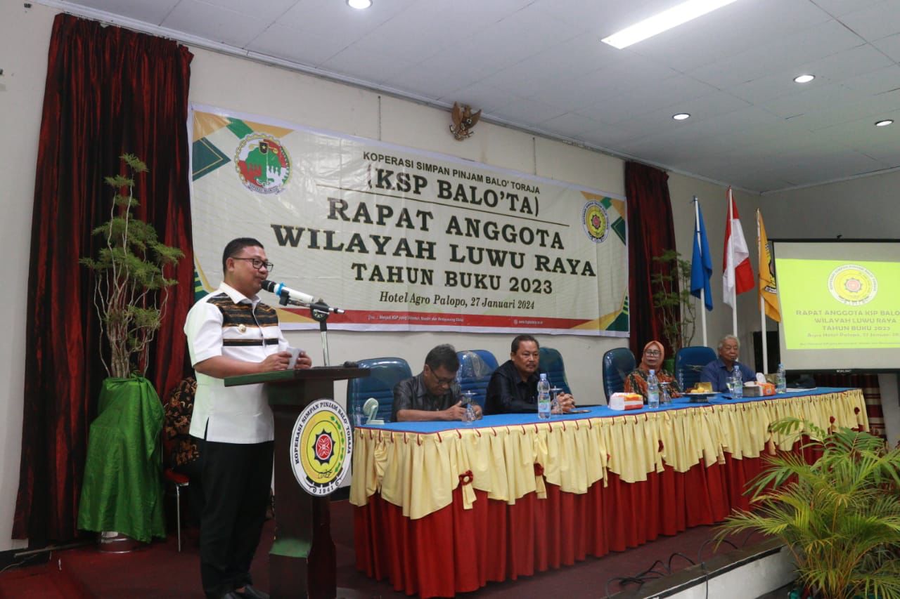 PALOPO, ANGKASA NEWS– Pj Wali Kota Palopo Asrul, Sani, SH.,M, Si, membuka Rapat Anggota Tahunan (RAT) wilayah Koperasi Simpan Pinjam (KSP) Balo’ta tahun buku 2023.